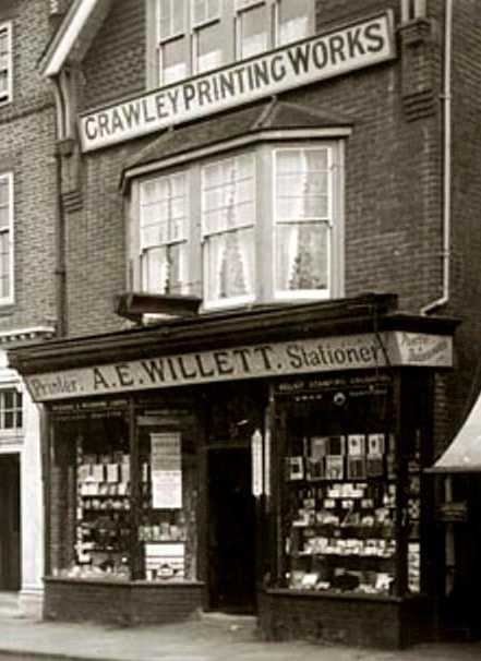 ![]() ![]() The Cabin, adjacent to Crawley Railway Station, sold sweets and cigarettes. It was removed along with the station in 1968. 1-3 High Street ![]() Henry J. Sadler, Chemist (1920-1962) Crombie & Sadler, Chemist (1968-1986) Cubitt and West, Estate Agent (1998) Private Shop, Aldult Products (2006-2018) Vacant (2018-2019) KAIA, Turkish Barbers (2019-) 3 High Street Linford's Stores, Wine & Spirit Merchants (1913) Castle & Co., Wine, Spirit & Beer Merchants/Off Licence (1938-1968) Hoover Service, Electrical Goods (1972) P.R. Dyer, Electrical Goods (1976-1986) Bedrock Musical Exchange, Musical Instruments (1998-2006) Acu-Herb Chinese Consultant, Acupuncture and Herbal Remedy (2012-) 5-7 High Street ![]() Archie Edward Taylor, Boot Maker (1913-1924) Mulholland & Tedd, Boot Dealers (1938 ) C. Towner, Boot Repairers (1938) Mullhollands, Foot Fitters (1951) Vacant (1968) Mala, Furniture (1972) County Valuer & Land Agent (1976) Phoenix Homes, Estate Agent (1986-) Andrew Hunt, Estate Agent (1998-2024) Vacant (2024-) 7 High Street Hy. Clement Pace, Draper (1913-1924) Wilfred T. Dean, Domestic Stores (1938) S. C. Withers, Radio, Records, Television (1951) Holmes & Cole, Mens Tailor (1968) Crawley Aquarium, Pets (1972-1976) Vacant (1986) Vacant (1998) Taylor Robinson, Admin Departement, Estate Agent (2006) Imli, Indian and Nepalese Restaurant (2007) Seven Spices, Indian Restaurant (2007) Da Peppino, Italian Restaurant (2011-2012)) Taormina, Italian Restaurant (2012-2020) Da Nico, Italian Restaurant (2021-) 9 High Street ![]() Albert Edward Willett, Printer, Stationer, Publisher, Bookseller & Fancy Repository, Bookbinders (1913-1951) The Crawley Courier (1956) Crawley Stationers, Office Equipment, Stationery (1968) Charles Clarke, Office Equipment, Stationery (1972-1976) Vacant (1986) 11-13 High Street ![]() ![]() The original building was demolished and replaced with the new Post Office, which opened in 1928. The building was occupied by the Paymaster General's Office between October 1964 and August 1968 before moving into their new building in Russell Way. 11 High Street E.C. Titcomb, Auctioneers, Surveyors, Valuers, House, Land and Estate Agents (1913) H.H. Stockdale Ross, Solicitor & Comissioner for Oaths (1924) C.F. Taylor & Co., Auctioneers, Surveyors, Valuers & Estate Agents (1924) Post Office (1928-1959) Paymaster General's Office (1964-1968) Post Office, Offices (1976-1986) 13 High Street George Francis Hampton Banks, Architect (1913) Post Office (1928-1959) Paymaster General's Office (1964-1968) Post Office, Offices (1976-1986) ![]() 15-25 High Street ![]() In 1958 the two rows of shops were demolished to widen the road and create a roundabout. 15 High StreetMarie Bradbury, Hair Dresser (1913) Alfred George Kale, Tobacconist / Tobacconists, Hairdressers (1924-1951) 17 High Street George Tizard, George Tizard & Son, Watch Maker 17 (1913-1938) Horsham Dry Cleaners (1951) 19 High Street Stephen Simmins & Son, Ironmongers &c. (1913-1924) Lucas Bros., Stationers, Newsagents, Toy Dealers, Confectioners, Tobacconists & Circulating Library (1938) W. H. Smith & Son, Booksellers and Stationers (1951-1956) 21 High Street David Stokes, Draper (1913) Emmeline Crisp, Draper (1924) William Taylor Williams, Draper (1938) Crawley and District Co-op. Society (1951) 23 High Street Brooks & Co., Sydney Henry, Confectioners (1913-1924) William Taylor Williams, Draper (1938) Crawley and District Co-op. Society (1951) 25 High Street John Wilkins, Butcher (1913-1938) Crawley and District Co-op. Society (1951) ![]() Portland House, 25 High Street Barclaycard Services (2006) |