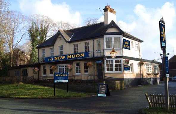 The original Half Moon stood well back from the road, but was replaced by a new building adjacent to the road in about 1890. The pub was refurbished and opened as a sports bar and renamed The New Moon on 28th August 2014.